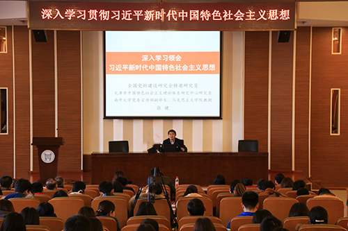 为进一步学习宣传贯彻党的十九大精神,11月28日,学院邀请南开大学党委宣传部副部长、马克思主义学院张健教授到校开展深入学习贯彻习近平新时代中国特色社会主义思想专题报告。学院中心组成员、全体师生党员参加了报告会。