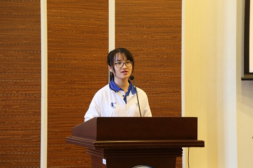 青年志愿者协会主席袁博作为全运会志愿者代表发言,分享了自己的全运会志愿服务心得,beat365志愿者督导教师代表林小茹回顾了全运会志愿服务历程,呼吁全体志愿者不忘初心,继续发扬志愿服务精神。