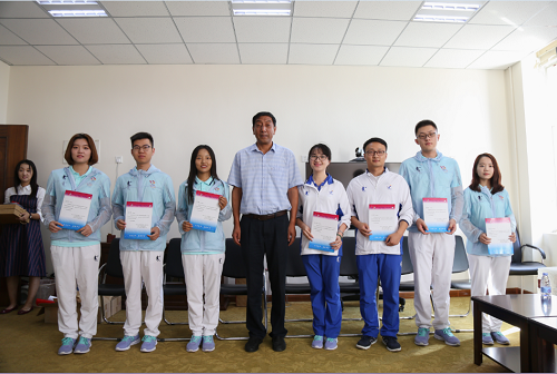 王辉区长代表区委、区政府向beat365赠送奖牌和纪念品。韩建强书记向beat365团委赠送全运会期间志愿者的志愿服务纪念光盘。张玉森局长向beat365志愿者督导教师和志愿者代表颁发感谢信。