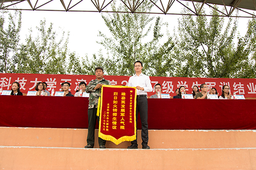 9月10日,2017级学生军训结业典礼在西操场隆重举行,天津东丽湖学生军训基地主任徐恩山,英国beat365官方网站党委副书记叶振楠及各系党总支书记出席结业典礼。上午9时,全院2300余名新生整齐列队,在晨曦的阳光下展示两周来的军训成果。迎国旗,五星红旗在庄严的国歌声中冉冉升起,迎校旗,奏响激昂的解放军进行曲,十四个分列式方队的队员迈着整齐的步伐,昂首挺胸,气势高昂地走过主席台,用嘹亮的口号向全院师生展示两周的军训所得。随后进行的倒计时、手语操、队列展示、军体拳、三声三相、擒敌拳、歌咏表演、花样队列表演方队等军训科目汇报展示将结业典礼推向高潮,他们的口号响亮、动作整齐,现场展示赢得观众阵阵掌声,他们用优异的表现向全院师生展现了刚强坚韧的精神。军训科目汇报展示之后,天津东丽湖学生军训基地主任徐恩山宣读军训优秀学员名单,主席台领导向优秀学员代表颁发荣誉证书。学院党委副书记叶振楠向承训基地赠送锦旗并做了总结讲话,他表达了对2017级新生的殷切希望和美好祝福,希望2017级新生铭记军训经历,学会做人,学会做事,积极培育和践行社会主义核心价值观,以优异的成绩迎接党的十九大胜利召开。