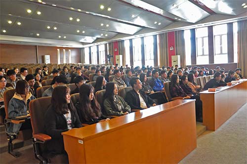 王斌书记用生动的语言、详实的案例,从培养和弘扬社会主义核心价值观、培育优良校风、正确认识时代责任感和历史使命感、正确认识远大抱负和脚踏实地等方面,对习近平总书记在全国高校思想政治工作会议上的讲话精神进行了传达与解读。最后,王书记向全体学生党员及学生干部提出三点要求:一是要把习近平总书记重要讲话精神学习好、宣传好、贯彻好、落实好;二是加强自身理论学习,不断用理论知识充实自己的头脑;三是要充分发挥先锋模范作用,做社会主义核心价值观的坚定信仰者,积极传播者,模范践行者。