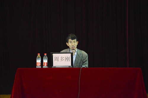 周多刚教授以《不忘初心,继续前行》为题,介绍了中国共产党的成立、新民主主义革命、社会主义革命和建设以及改革开放和社会主义现代化建设四个时期的光辉历程,以党的具体历史事件为例具体分析,明确要坚持党的基本路线,为实现中华民族伟大复兴做出应有的奉献。
