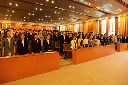 大会伊始,全体师生起立,奏唱国歌,随后团委书记殷实宣读了《2017年五四表彰决定》。管理系会计1410团支部、材料系材料1501团支部获得五四红旗团支部荣誉称号,土木系土木1501团支部等8个团支部获得优秀团支部荣誉称号,材料系材料1501班等10个班获得优秀班集体荣誉称号,谢晨璐、王博等10名同学获得优秀共青团干部标兵荣誉称号;董小永、周洁蕾等10名同学获得优秀学生干部标兵荣誉称号。