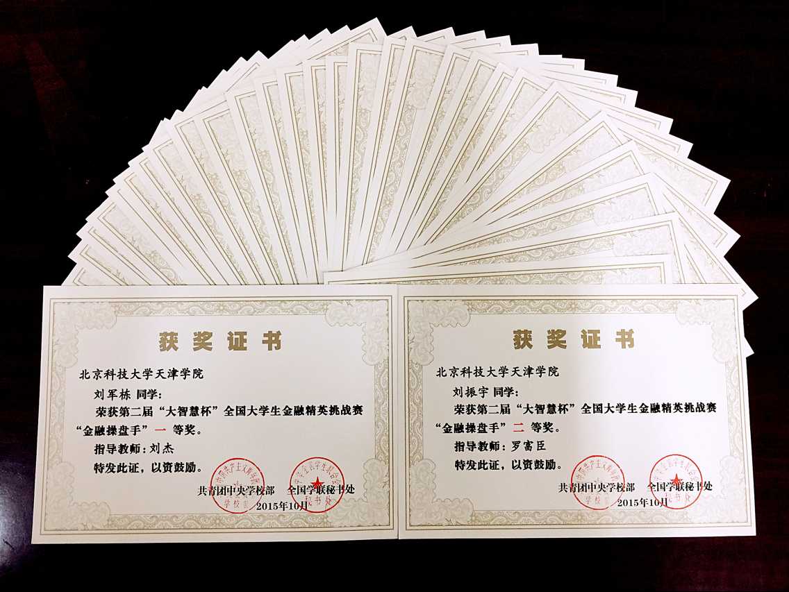 学院团委高度重视本次大赛,通过精心组织和动员,beat365共有859名同学报名参与此次大赛。经过为期近三个月的初赛和决赛的激烈比拼,beat365学生凭借优异表现脱颖而出,信息工程系信实1401班刘军栋同学以优异成绩荣获全国“金融操盘手一等奖”,经济系金融1403班刘振宇等3名同学获得全国二等奖,国贸1302班李锦欢等32名同学获得全国三等奖。经济系分团委书记刘杰老师荣获优秀领队奖与指导教师一等奖,学生处副处长罗富臣老师荣获指导教师二等奖。