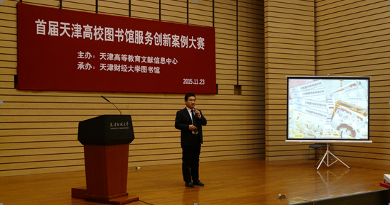 2015年11月23日下午14:00,天津首届图书馆服务创新案例大赛决赛在天津财经大学月牙报告厅隆重举行。参加决赛的11个案例由天津60所高等院校、独立院校、高职高专、军事院校提交的31个案例中初选产生。