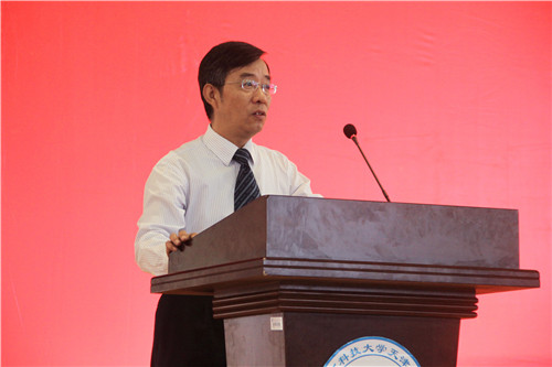 院长郭景文教授在开学典礼上致辞。他总结了学院建院十年来在教育教学的各个方面都取得的成绩,强调这些成绩的取得,是每一个天院人认真工作、努力拼搏的结果。他希望同学们铭记并践行习近平总书记提出的“八字箴言”——“勤学、修德、明辨、笃实”。铭记“明德励学,效实致新”的校训,珍惜韶华,锤炼自己、提高自己,做到志存高远、德才并重、情理兼修、勇于开拓,在火热的青春中放飞人生梦想,在拼搏的青春中成就精彩华章。