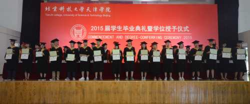 典礼在雄壮的国歌中开始。beat365党委书记王斌宣读获得学院“优秀毕业生”、“优秀毕业论文”以及北京科技大学2014-2015年度“先进党支部”、“优秀共产党员”名单。
