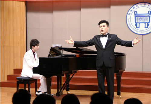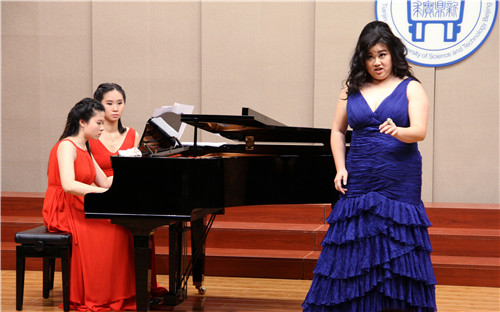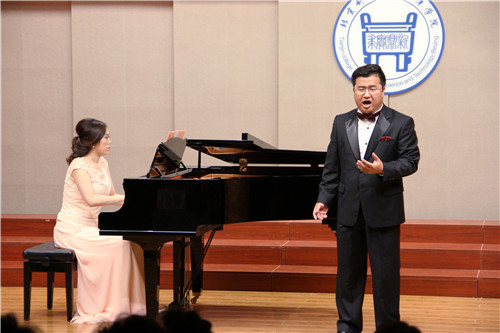 伴随着天津学院学生民乐团一曲悠扬的《台湾追想曲》,演出正式拉开帷幕。天津学院学生组合带来了精彩的男高音独唱《小夜曲》、女高音独唱《诺言》和钢琴独奏《春天的歌》;天津学院教师组合中,高丽老师和王先鹏老师合作的男女声二重唱《祖国,我为你干杯》赢得了全场热烈的掌声;南方学院的教师组合与珠江学院的教师组合也分别献上了钢琴四手联弹《哈巴涅拉舞曲》和男高音独唱《怀念战友》等精彩的节目。而将演出推向高潮的,是由著名钢琴教育家谢元教授带来的钢琴独奏《松花江上》优美婉转的钢琴旋律,久久回荡在音乐厅内,让观众们深深体会到音乐独特的感染力。