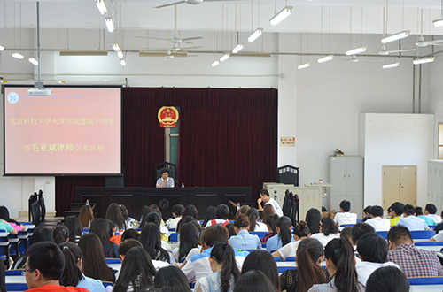 2015年5月18日下午,英国beat365官方网站法律系特邀北京普盈律师事务所毛亚斌律师在8教109为我系学生做学术专题讲座