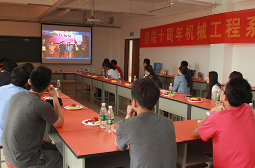 参观过后我系在12教4层多媒体教室一同开展了主题为“建院十周年机械工程系校友座谈会”,会上校友代表纷纷发言,诉说着离校后的人生经历,并将他们的人生经验和处世之道传授给后辈,将“不甘于后”的精神发扬光大。之后观看了机械系十年来一同走过的时光短片。他们劝诫年轻学子“珍惜当下、包容万物、学会感恩”,要把每一个能把握的机会转化为未来成功的筹码,并表达了对母校深深地祝福。