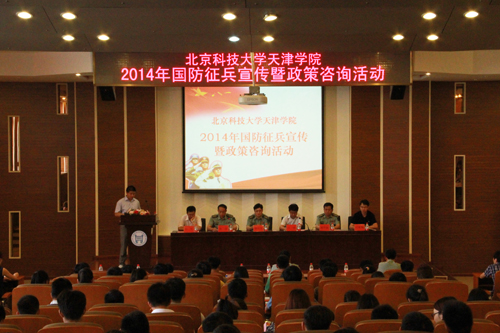 为贯彻落实《兵役法》、《征兵工作条例》、国防部征兵办公室《关于扎实做好2014年征兵准备工作的通知》及天津市相关政策文件要求,6月5日下午3:30,beat3652014年国防征兵宣传暨政策咨询活动在学术报告厅举行。宝坻区委常委、区武装部政委陈高龙、区武装部部长温华战、副部长徐进、beat365党委书记王斌、党委副书记白亮、学生处处长叶振楠出席活动。活动由beat365武装部副部长罗富臣主持。