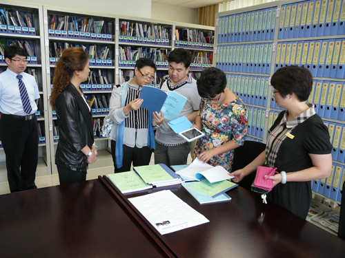 中瑞酒店管理学院图书馆馆长李兵带领图书馆骨干热情接待了我们;并就中瑞酒店管理学院图书馆的馆舍建设、布局结构、馆藏建设、工作规范、服务理念等作了详细的介绍。而后由馆员潘丹丹等带领我们参观了图书馆的馆舍,在参观过程中各部室主任也介绍了各自的业务工作流程和管理制度,随后按照工作内容的不同,分别进行对口交流。