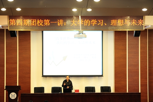 在庄严的国歌声中,团校开学典礼拉开帷幕。团委副书记赵婧媛介绍了本期团校的培训计划和要求。本期团校培训分为自主学习和集中学习两个部分,自主学习包含学习党的十八大报告精神、胡锦涛总书记在庆祝建团90周年大会上的讲话精神、党史知识、新党章、团章等;集中学习内容包含专题讲座、专题晚会、班级活动、素质拓展等方式开展。