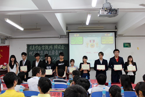 经过此次为期一个月的比赛,经济系代表队最终摘得本届“学院杯”辩论会冠军,管理系、外语系代表队分别荣获亚军和季军,“最佳精神文明”奖由机械系代表队收获囊中。最后,学院团委副书记何红升为本活动月致闭幕词,何老师肯定了求是学会的工作,并代表院团委向为本活动月付出辛勤汗水的求是学会全体成员表示衷心的感谢,相信并鼓舞求是学会继续发展壮大。至此,求是学会第五届“理论星光活动月”胜利闭幕。
