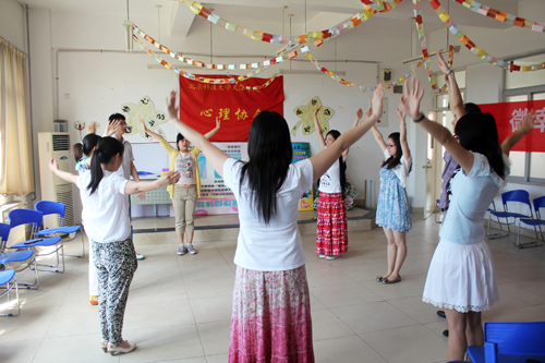 10点半举办了管理系心理沙龙专场, 15日上午10点举办了信息系和经济系联合心理沙龙。这两场沙龙则是以“轻柔体操”作为开场,各位辅导员各显神通,为大家带领自己拿手的减压活动,结合身心一体的原理,引导大家通过对身体的关注进而觉察压力,学会关照自己,在轻松、亲切的氛围下,大家真诚地分享了各自的压力及好的减压方法,大家集思广益,给彼此出主意,体现了团体的关爱和力量。