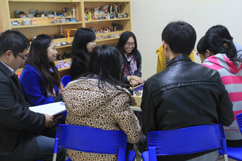 本次培训的主题为“辅导员的沟通技巧——如何深度理解学生”,培训分三个部分进行。首先,通过对一个学生沙盘作品的分析和讨论,引出沟通和理解的话题,总结出有效沟通的原则是放下先入为主的观念;接纳学生;尊重学生;站在学生的角度思考等。然后,大家按照随机的顺序,共同完成了一个团体沙盘作品“和谐大千世界”。团体沙盘游戏是由团体成员按照一定的规则共同制作一个沙盘,并对沙盘进行讨论,通过小组成员在沙盘中的互动,有效的呈现团体的内部动力与成员的无意识沟通。在团体沙盘体验中,大家不仅增加了对自己的觉察,而且也加深了团体其他成员的理解,并生动再现了大家在现实生活中的人际互动状况。最后大家分享了彼此在沙盘体验中的想法和感悟,对从事学生心理工作有一定的启发作用。