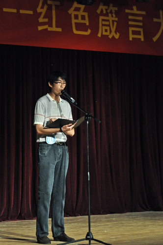 为庆祝中国共产党建党90周年,重温党的建设中艰苦历程,弘扬广播文化,“校园之声”广播站于5月9日晚在学生活动中心举办了“红色箴言大家读”第六届朗诵大赛决赛,宣传部副部长张琦、宣传部指导老师梁格格出席大赛并担任评委。