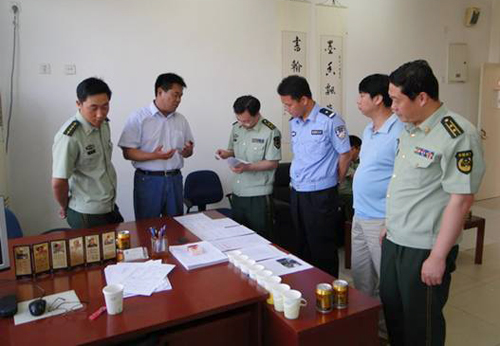 督察组正在检查beat365消防规章制度建设