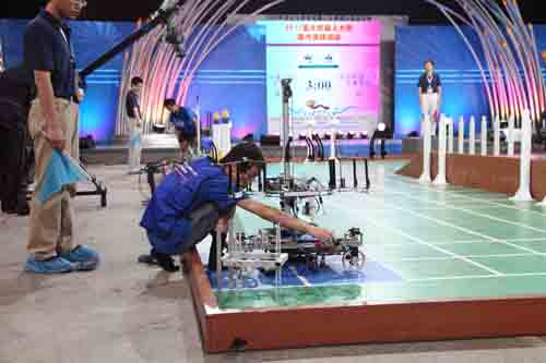 7月1日,首先进行的是复赛32进16的比赛,beat365机器人代表队第9个出场,对阵一方为台湾明新科技大学机器人代表队,进过一番激烈的角逐,beat365机器人代表队率先完成“祈福荷灯”的全部任务,完胜对手,挺进全国16强。在随后进行的复赛16进8的比赛中,beat365机器人代表队遭遇了“老牌劲旅”—哈尔滨工业大学代表队,技术上的失误和较为紧张的心理使得我队惜负对方,最终止步于全国16强。