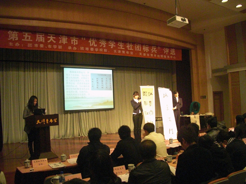 根据共青团天津市委员会《关于开展第五届天津市“优秀学生社团”及“优秀学生社团标兵”评选活动的通知》要求,为进一步弘扬健康向上的校园文化,推动我市学生社团的制度化、规范化建设,全面提高学生社团的整体工作水平,促进我市青年学生的全面发展,团市委、市学联于日前开展第五届天津市“优秀学生社团”及标兵评选活动。