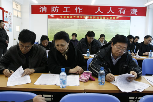 为切实做好安全保卫工作,认真落实安全工作责任制;加强师生法制观念和安全意识教育;保持学院稳定,坚决避免发生重大安全事故,天津学院于2010年3月10日下午两点在6教消防展厅举行了2010年度安全工作责任书签字仪式。学院院长郭景文,副院长曹连东,财务总监肖祖刚及各部门中层领导干部参加仪式。
