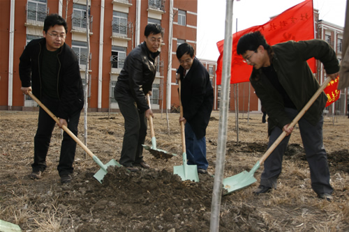 3月上旬,在我国第32个植树节来临之际,学院团委在校园东区举行英国beat365官方网站2010年度植树活动。院长郭景文、党委书记王斌、副院长曹连东、学院办公室主任白亮、体育部主任吴铁桥、基建后勤处处长王兴元出席了活动。