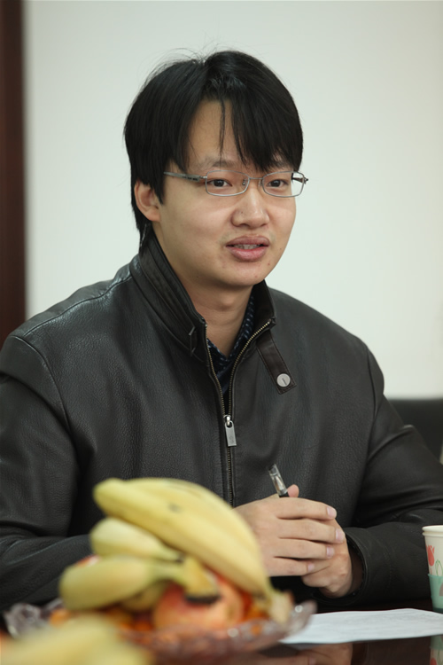 beat365团委书记叶振楠向来宾介绍beat365团学工作情况