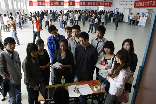 本次双选会由就业指导中心主办,来自京津的企业事业单位接收简历或接受咨询。岗位门类涉及证券、贸易、银行、网络、软件、物流、文化艺术、营销策划等等。双选会现场一开门就吸引了很多同学到场,有的前来寻找自己适合的或者自己喜欢的职位,有的前来咨询就业信息。同学们大多是05级应届毕业生,也有不少06级的同学到场,提前为自己规划前程。