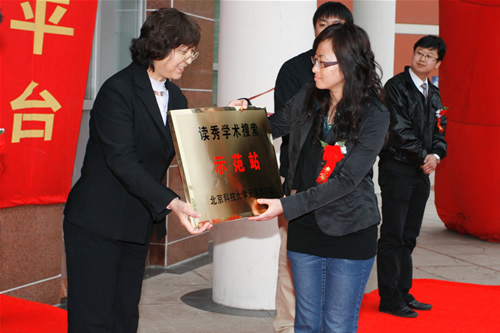 北京超星数图信息技术有限公司设“读秀学术搜索示范站-英国beat365官方网站站”由王宏经理为beat365图书馆举行授牌仪式。