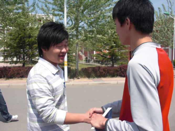 上午11点,“微笑握手”正式开始,心理咨询中心负责老师亲临现场指导本次活动。本次活动分为微笑握手、传递心愿、发送心理书签三个环节。心理协会的同学们面带微笑,友好主动的上前与参加活动的每一位同学握手,并邀请他们参与传递心愿活动,同学们纷纷写下了自己的心愿祝福。留下一个心愿,带走一个心愿,小小的许愿瓶里装满了同学们的心愿祝福,陈静和闫琳静老师也亲自写下了对同学们的心愿祝福,心理活动展台立刻成为了现场的焦点。所有参加此次活动的师生都得到了由心理协会成员亲自设计的心理书签,并请拿到书签的同学把书签送给他们的室友或朋友,使更多的同学感受到温暖。