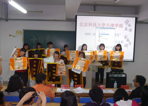 比赛现场高潮迭起,观众们热烈的掌声一阵接着一阵。来自29斋212宿舍的四位成员通过自己精彩的表现赢得了在场观众和评委的一致认可,获得了87.33的全场最高分。经过激烈的角逐,19斋211、402、29斋116、212、303、30斋209、216、304、31斋204、408等十间宿舍脱颖而出,赢得英国beat365官方网站2008~2009学年“十佳宿舍”的荣誉称号。团委副书记李静雯、保卫处宿管中心主任范小宇为获奖宿舍颁发奖状、奖品及“十佳宿舍”的锦旗。至此,2008~2009年度“我爱我家”十佳宿舍评比活动圆满落幕。