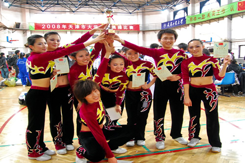11月29日,beat365健美操代表队赴天津工业大学参加了天津市2008年大学生健美操比赛,本次比赛由天津市教委主办,beat365健美操代表队技压群雄,取得独立学院组第一名的好成绩。