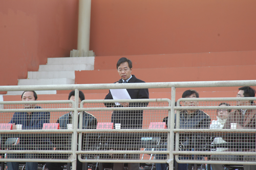 院长郭景文教授致开幕词并宣布比赛开始,体育部主任吴铁桥鸣枪发令,第四届“一二•九爱我中华”火炬接力赛拉开帷幕。