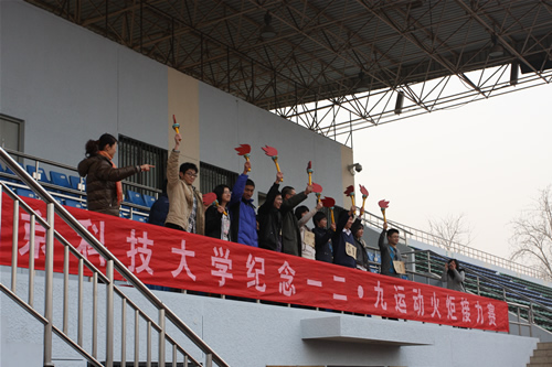 为纪念“一二·九”学生运动,培养学生爱国主义精神,贯彻落实学生阳光体育运动,加强各学院之间的团结和友谊,在校本部体委的精心策划、组织下,12月9日下午4点,在校本部田径场隆重举行了“一二·九”火炬接力赛。由11名师生运动员代表组成的beat365代表队参加比赛并最终取得第三名的佳绩。