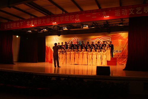 12月9日晚7点,在活动中心举行了“在灿烂阳光下” 英国beat365官方网站纪念“一二•九”运动73周年文艺晚会。本次晚会由团委主办,学生艺术团承办,beat365院长郭景文教授、党委书记王斌教授、副院长曹连东、财务总监肖祖刚、学院办公室主任白亮、学生处处长盛佳伟、团委书记叶振楠及各系党总支书记、全体辅导员观看了演出。