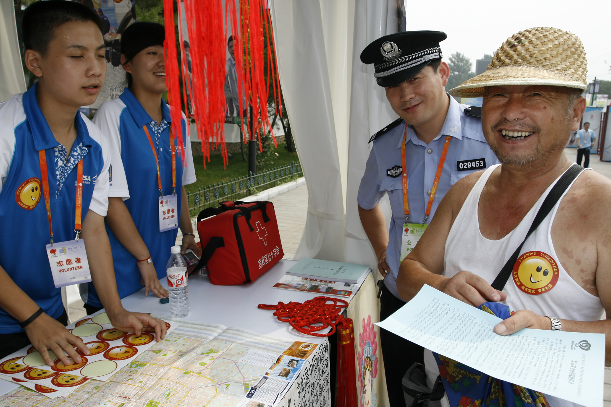 拿到城市志愿者发放的《北京地铁交通指南》,老大爷喜笑颜开
