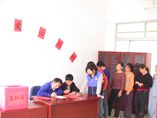 “天地无情人有情,一方有难八方援”,教工第二党支部第一时间响应学院开展爱心捐款活动的号召,组织了包括基建后勤处、保卫处和财务处在内的三个处室的入党积极分子联合募捐。 5月15日上午,三个处室的入党积极分子,包括行政人员、下属的工作人员(包括保安员、保洁员、楼管员、维修人员、食堂员工、图书馆劳务人员)和食堂、商铺经营者在党员的带动下积极参与,以实际行动支援灾区同胞。