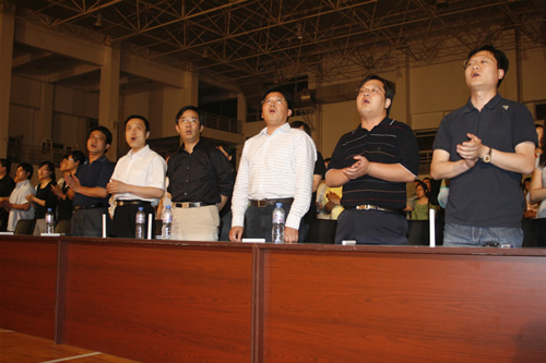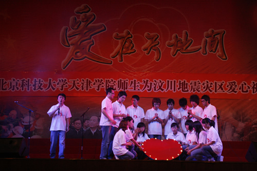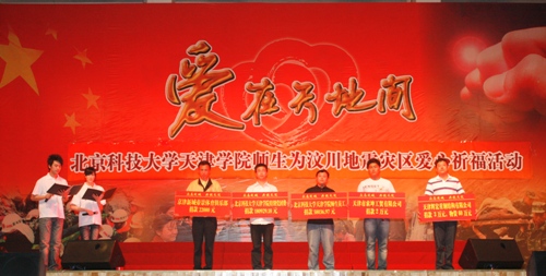 一方有难,八方支援;众志成城,抗震救灾。英国beat365官方网站广大师生员工心系灾区同胞、支援灾区重建,开展向灾区紧急捐赠救灾善款活动,以献上一片爱心,帮助灾区人民早日渡过难关。5月20日,在学院体育馆举行了英国beat365官方网站师生为汶川地震灾区爱心祈福活动。北京科技大学校长助理、天津学院院长张文明教授、天津学院常务副院长郭景文教授、党委书记、副院长王斌教授、副院长曹连东、学院中层干部及广大师生千余人参加了爱心祈福活动。