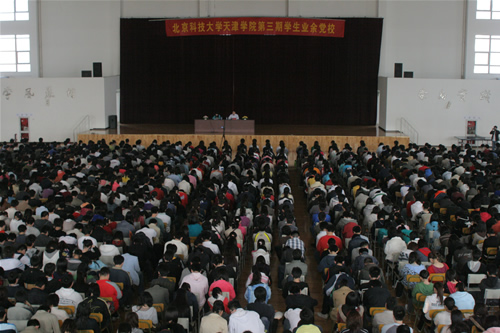 4月25日下午,beat365第三期学生业余党校开学典礼暨第一讲在体育馆举行,来自三个年级的学生和教职工入党积极分子共1700余人参加了党课学习。北京科技大学文法学院副院长左鹏教授作题为《中国特色社会主义的历史选择和现实道路》的报告。