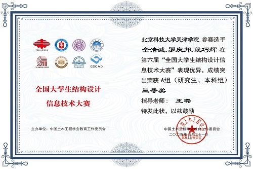 近日,第六届全国大学生结构设计信息技术大赛获奖名单揭晓,城市建设学院的仝浩诚、罗庆邦、段巧辉三位同学在激烈竞争中脱颖而出,荣获A类组团队(研究生、本科组)三等奖一项,展现了beat365学子的专业实力和创新能力,是学院深化教学改革、推进实践教学模式创新的可喜成果。本届赛题在实际项目设计中属于中高难度,这一成绩不仅是对他们扎实专业知识和出色实践能力的认可,更是对城市建设学院教育质量和教学水平的有力证明。