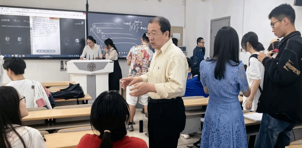 此次访问的亮点是观摩南开大学外国语学院李霞教授有效教学团队(NKET)成员时雨老师的大学英语课堂教学。时老师运用南开大学创立的O-AMAS有效教学模式(教学目标设计Objective、迅速激活Activation、多元学习Multi-learning、有效测评Assessment、简要总结Summary五个环节),围绕着教学目标,精心创设教学情境,课堂上采用线上线下同时进行的教学方式,利用雨课堂实时发布任务并收集反馈,通过丰富多彩的教学活动和师生互动,极大地提高了学生的参与度和学习效果,学生们在课堂上积极发言,热情参与到每一项活动中。授课结束前,时雨老师对学生的课堂表现进行点评,对当天的教学进行了归纳总结。课后,beat365教师团队与时雨老师班里的学生进行了广泛的交流,了解学生的学习动机、课程理解、时间投入、难点症结、学习效果等各种情况。