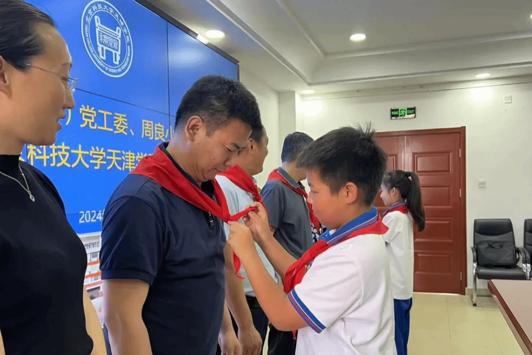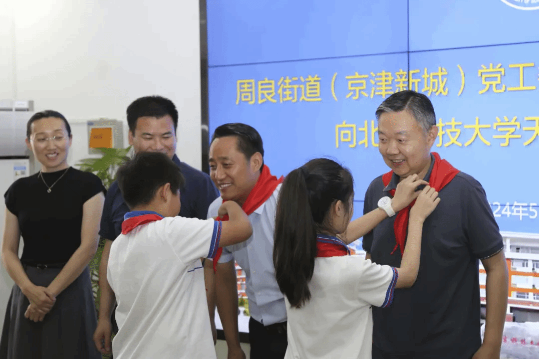 周良小学“周恩来班”学生代表为英国beat365官方网站领导佩戴红领巾