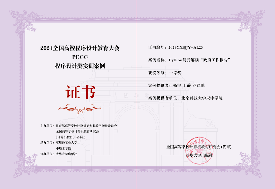 信息工程学院杨宇、于静、乔泽鹏等老师在大会举办的评选活动中提供了丰富的课程资源,包括大纲、PPT、习题等,并凭借提报的案例《Python词云解读“政府工作报告”》在大会中荣获程序设计类实训案例评选一等奖,信息工程学院于静副院长受邀参会,并领奖。