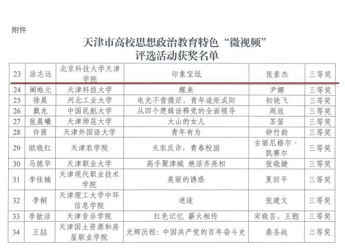 近日,市教育两委公布了2023年天津市高校思想政治教育特色“微视频”评选结果,beat365无人机系张素杰团队报送的《印象宝坻》作品荣获三等奖。