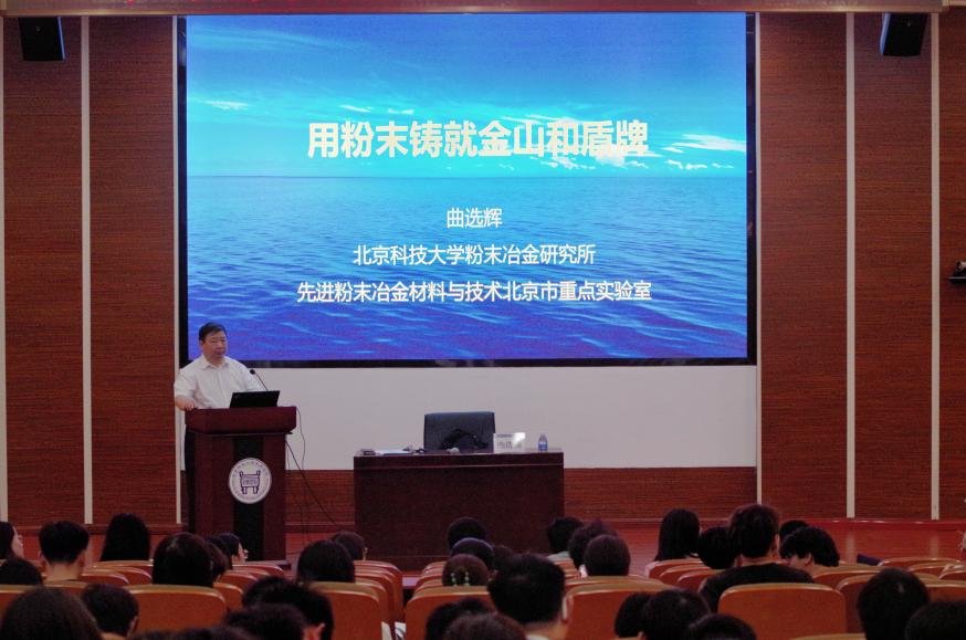 曲选辉教授围绕粉末冶金这项先进的高性能材料和零部件绿色制造技术展开讲解,向在场师生讲解了粉末冶金广阔的应用市场。并通过教授自己团队的科研案例,介绍粉末冶金行业优秀工作者们的创新创业,让小小的粉末,创造出无限的价值,造就“粉末金山”。列举了曲选辉教授团队所研究的粉末冶金技术在我国军事,航天航空,核能等国防事业上的应用,打破部分“卡脖子”技术,为强国强军注入新材料力量,用小小的粉末,铸造“科技盾牌”。讲座结束后同学们就自己感兴趣的问题提出疑问,曲选辉教授对每一个问题都给予了充分的关注,耐心做出回答,他鼓励学生们保持好奇心,勇于探索未知。