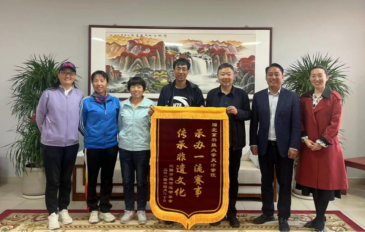 4月24日,沈阳市空竹运动协会、宝坻区空竹运动协会专程来到学院赠送锦旗。“承办一流赛事 传承非遗文化”“服务周到 办事高效”,一面锦旗、一份感谢,凝聚着对学院赛事承办工作成效的充分肯定。