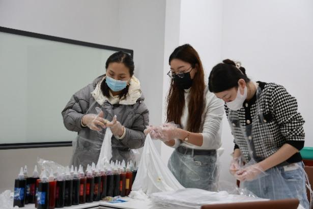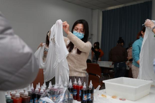 为全面贯彻党的二十大精神,弘扬传统民族文化,丰富女教师文化生活,激发对传统技艺的兴趣,2023年12月1日,在教师发展中心励学坊,由学院工会和图书馆联合举办“巧手来扎染”女工活动,工会主席郭雅娟、女工委员班岚、图书馆参考咨询部主任吴素舫等近40名教职工参加此次活动。