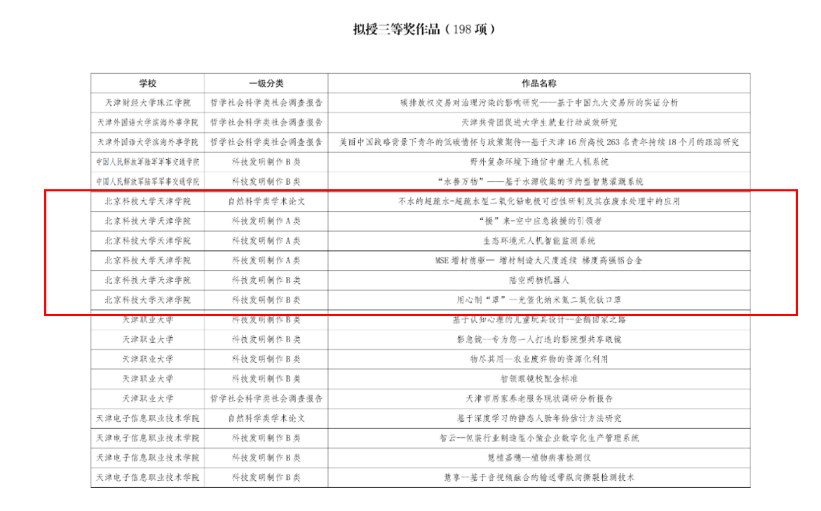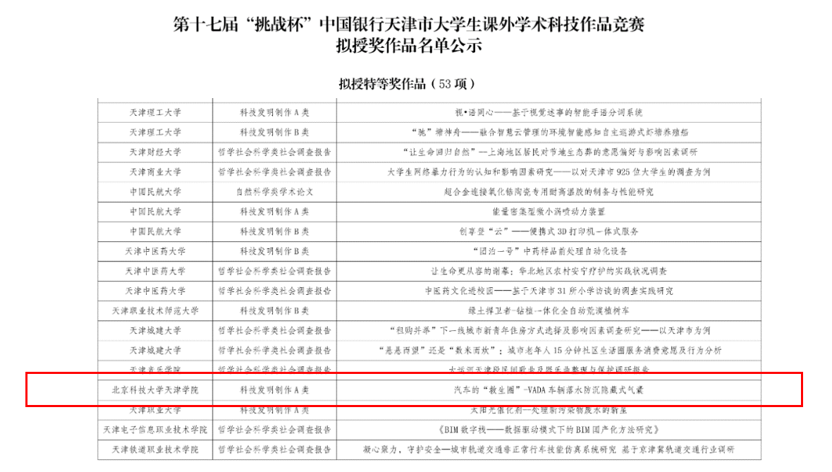 近日,由团市委、市教育两委、市科技局、市科协、天津社科院、市社科联、市学联主办的第十七届“挑战杯”中国银行天津市大学生课外学术科技作品竞赛圆满收官。本届“挑战杯”竞赛beat365共十一个作品参赛,最终共有1项获得市级特等奖,2项获得市级二等奖,6项获得市级三等奖,获得历史最好成绩!