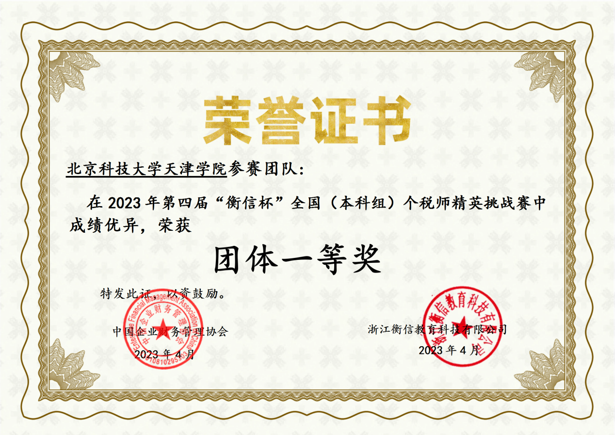 2023年4月22日,第四届“衡信杯”全国个税精英挑战赛落下帷幕。本次比赛吸引了来自全国五百所院校近三万余名学生参赛,参赛规模和参赛人数再创新高。在学院领导的支持以及管理学院常务副院长王宾容教授、全体教师的指导下,管理学院280名同学经过36天的精彩比拼和激烈角逐,最终以优异的成绩斩获本科组“团体一等奖”,其中刘连竹同学获得全国百强(个人)第14名,个人现金榜(本科组)三等奖。