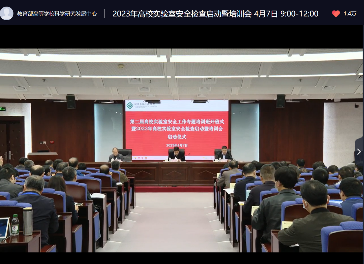 4月7日上午,学院组织有关人员参加教育部科学技术与信息化司、高等教育司举办的2023年高校实验室安全检查启动暨培训会,院长丁煦生、党委副书记赵志南参加培训会。